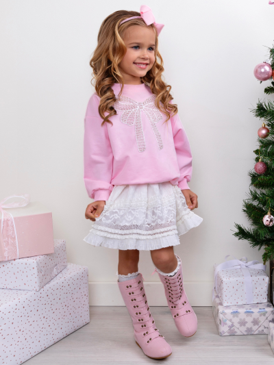 Pretty in Pink Pearl Bow Top and Lace Skirt Set