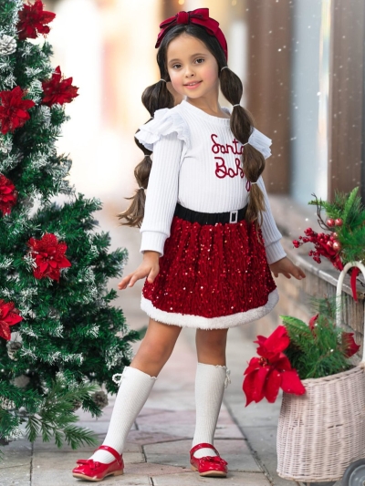 Santa Baby Ruffled Top and Sequin Skirt Set