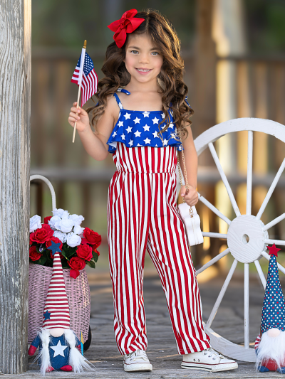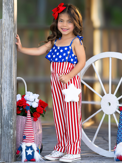 Patriotic Star & Stripes Tie-Strap Jumpsuit