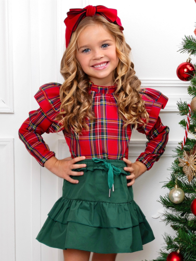 Holly Jolly Plaid Top and Ruffle Skirt Set