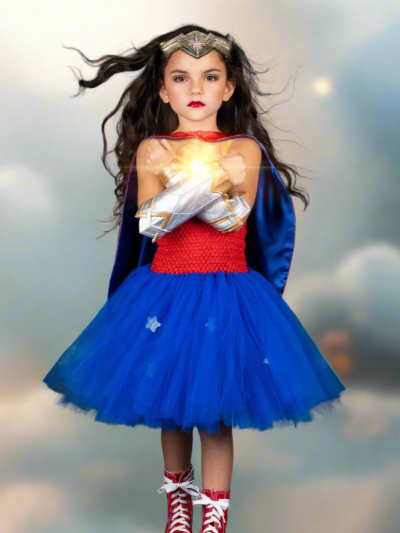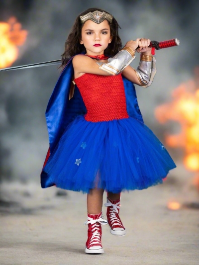 Girls Wonder Princess Tutu Costume Dress With Cape