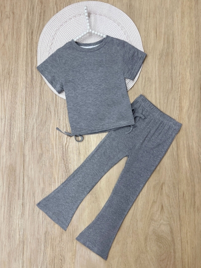 Everyday Stretch Grey Side-Ruched Tee & Flare Pant Set