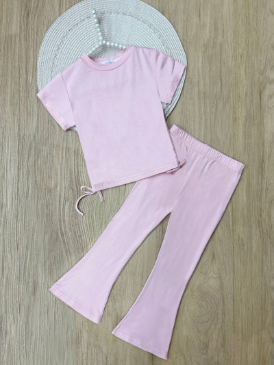 Everyday Stretch Light Pink Side-Ruched Tee & Flare Pant Set