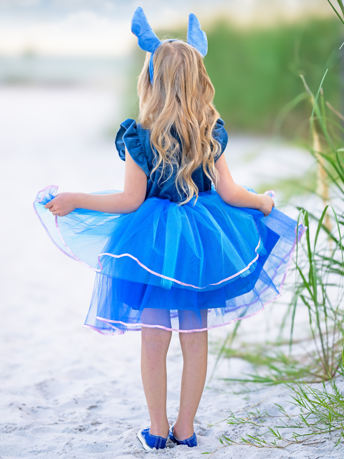 - Flutter sleeve blue tutu dress with Stitch-inspired details