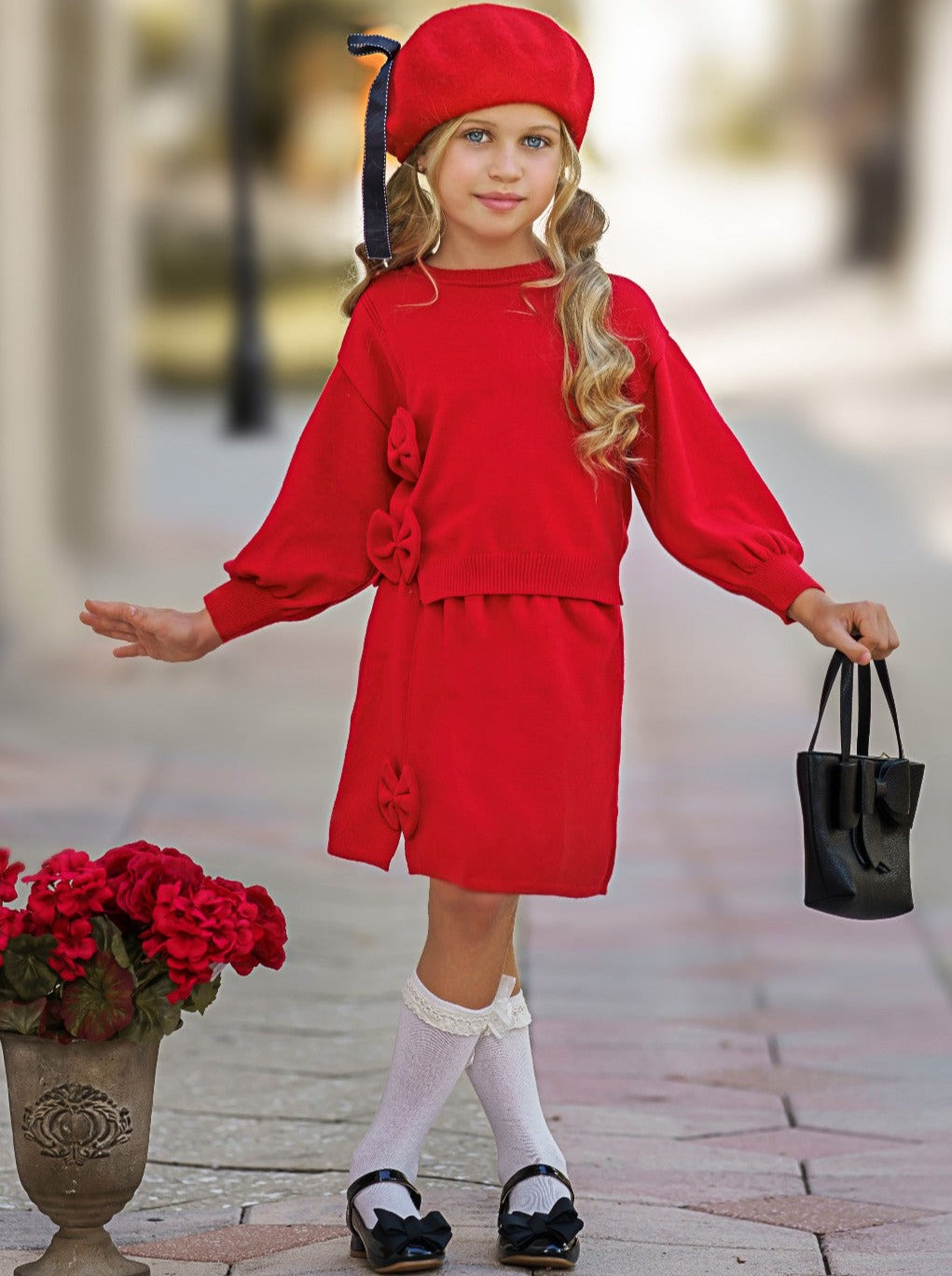 - Are you ready for this oh-so-precious sweater and skirt set? Baby girls will look sharp in this stunning set featuring a cozy bow-embellished sweater along with a matching skirt. Wear this with lovely boots for a more stylish outfit.