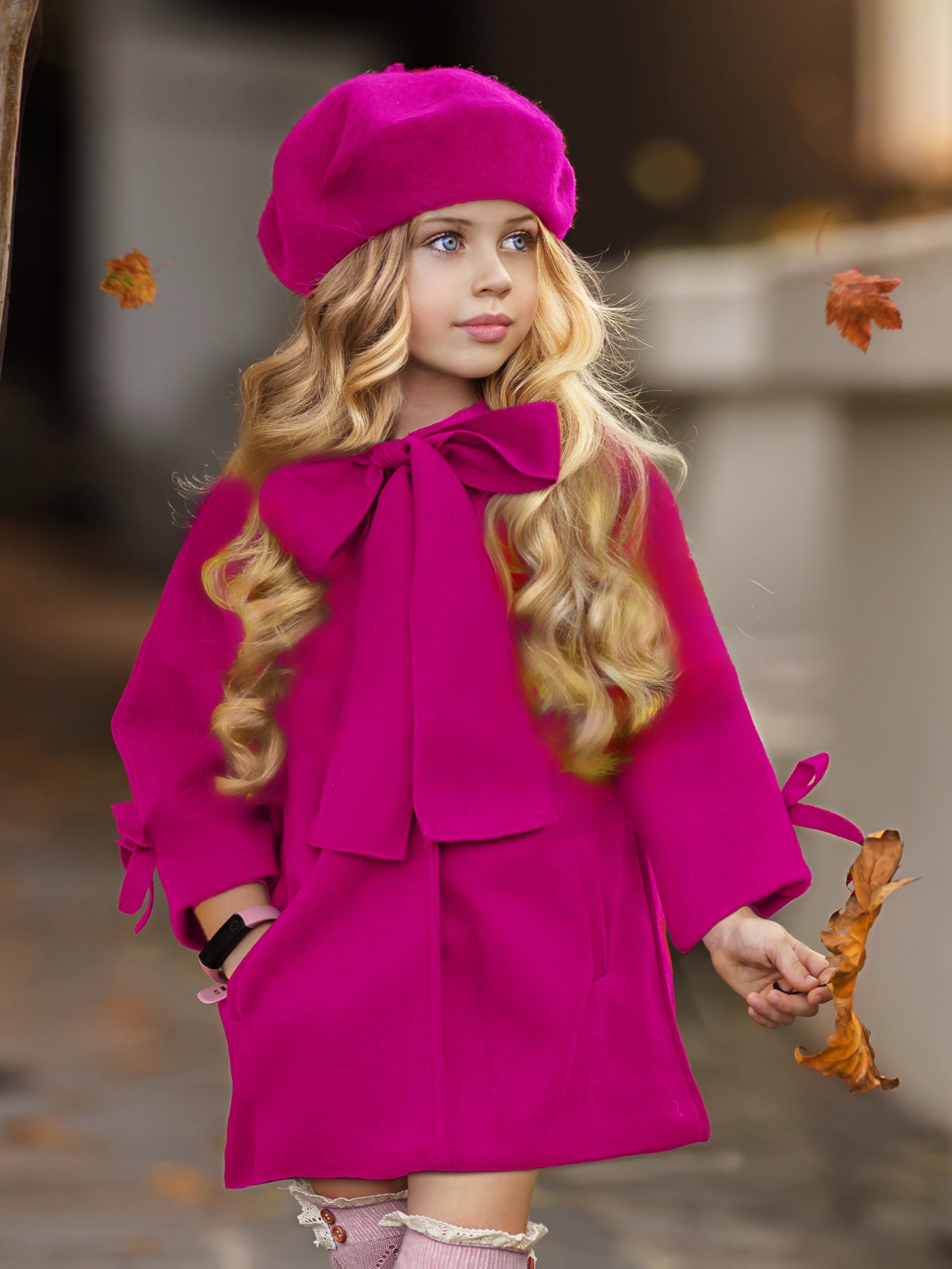 - Features a dramatic oversized bow at the collar, creating a bold and elegant silhouette perfect for holiday occasions and stylish strolls.