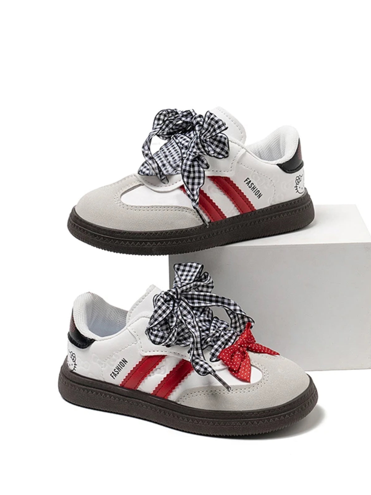 Step into everyday style with these chic gingham bow lace-up sneakers, designed for girls who love comfort and a playful fashion twist.
