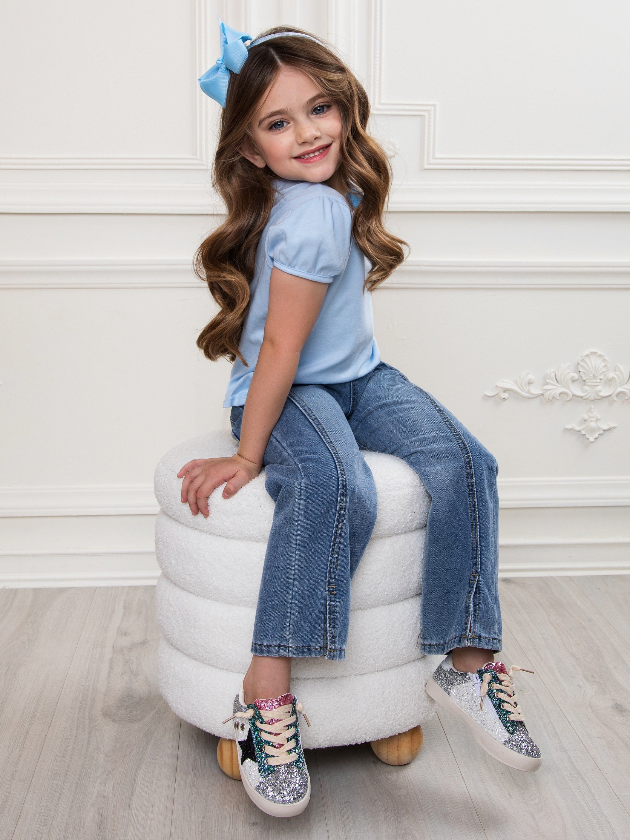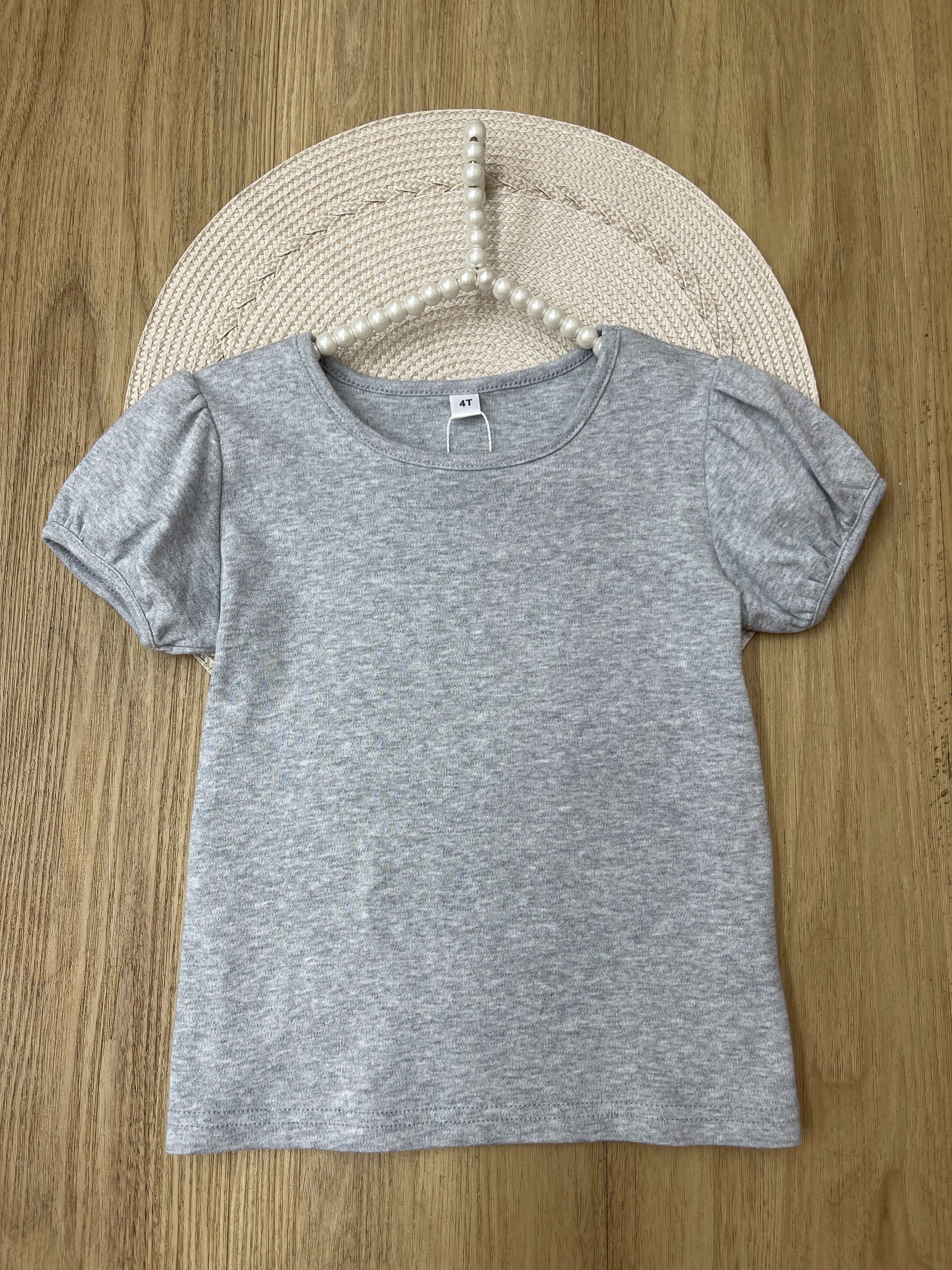 Soft, simple, and full of charm—this everyday tee is the ultimate wardrobe essential. With classic puff sleeves and a comfy fit, it’s perfect for layering or wearing on its own for easy school-day style.