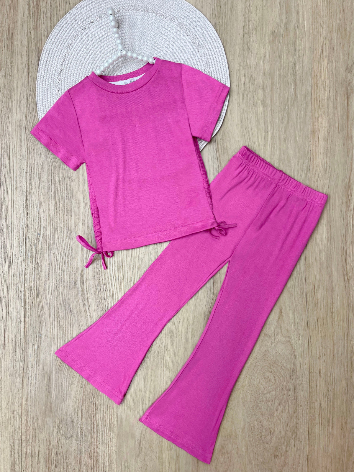 Everyday Stretch Pink Side-Ruched Tee & Flare Pant Set