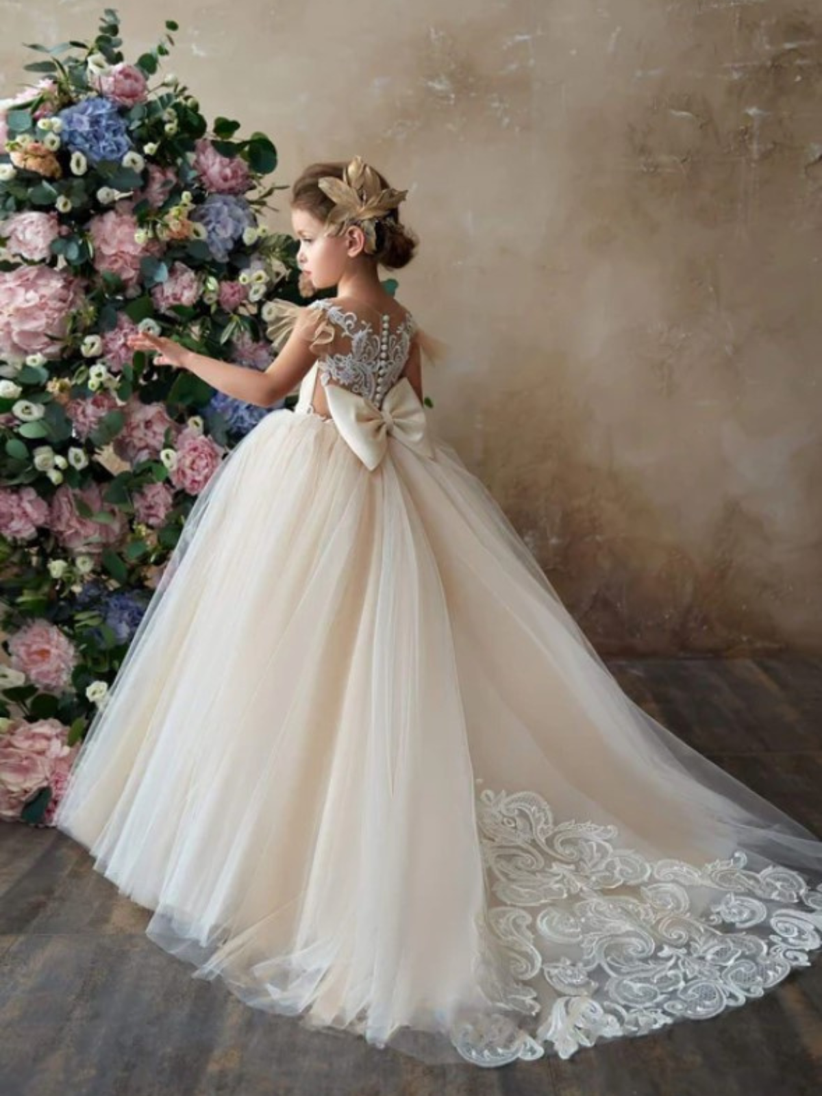 - Every girl deserves to have her princess moment! Our ruffle sleeve ball gown has stunning details, from its intricately decorated bodice to its dramatic tulle skirt and statement bow at the back. Your baby girl will look and feel like a real-life princess!