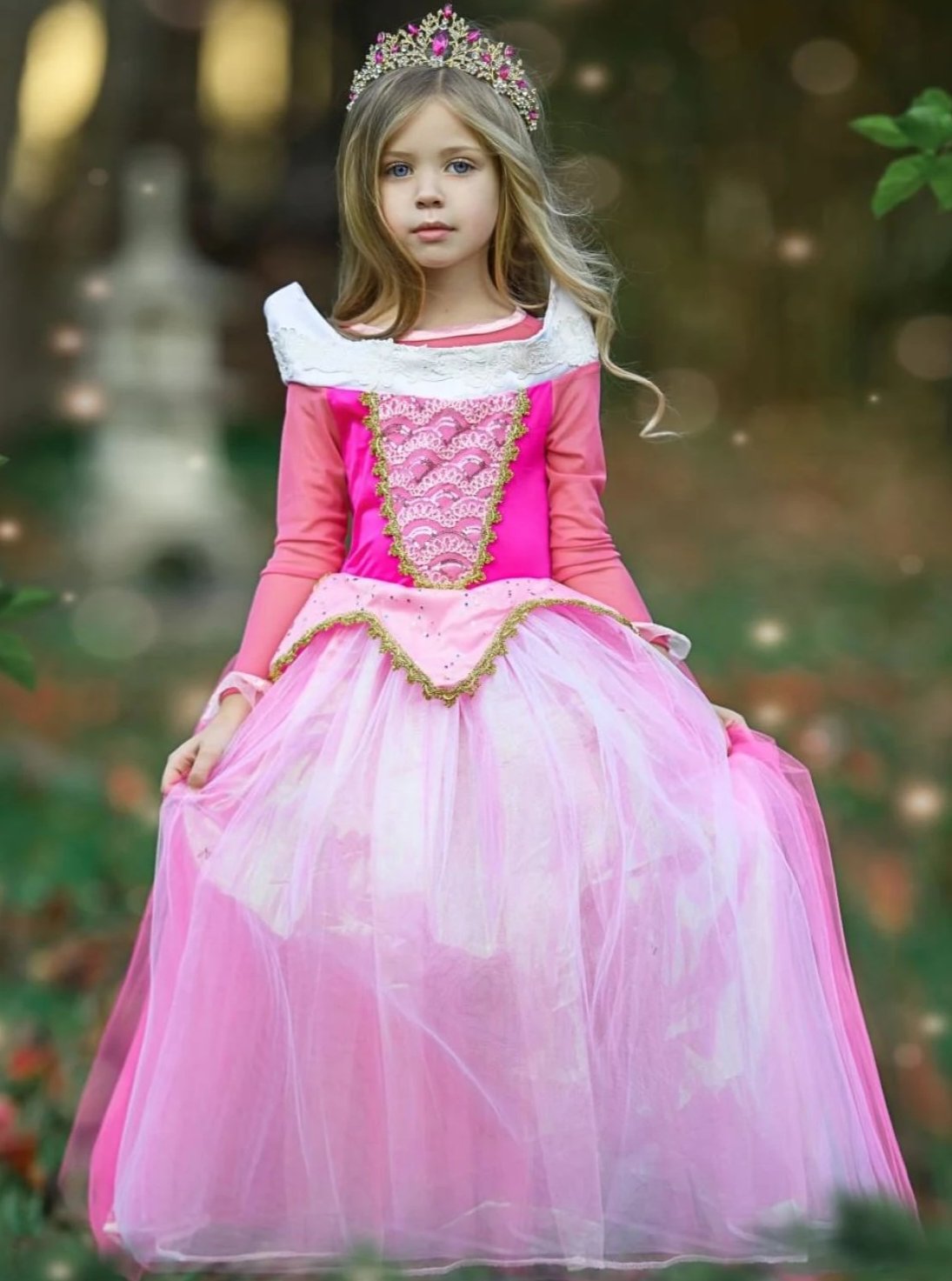 - This is the Sleeping Cutie gown your princess has dreamed of! This divine hot pink ballgown comes trimmed with gold. The stand-up white collar creates a sense of regality. A truly enchanting custom fit for your princess