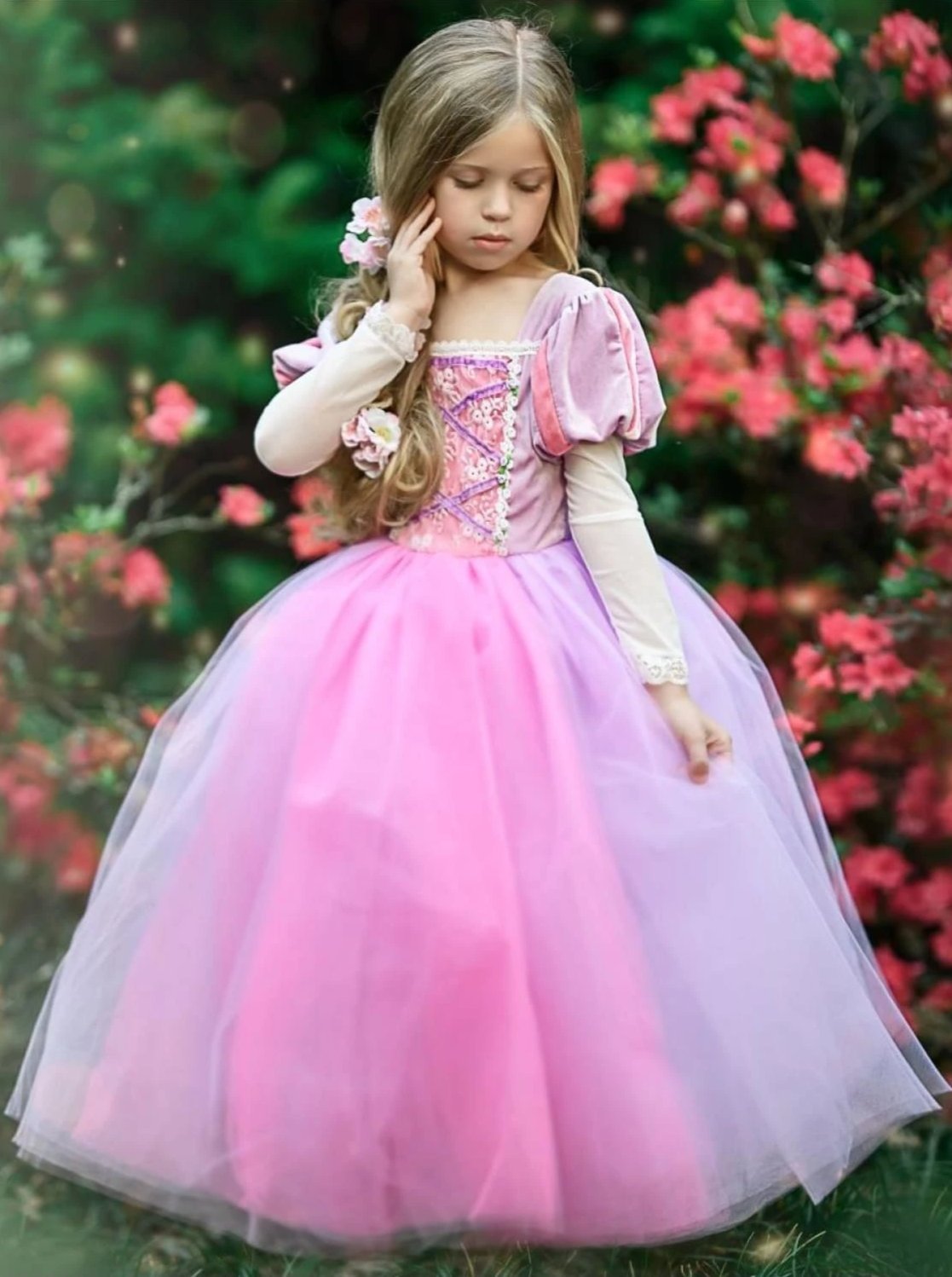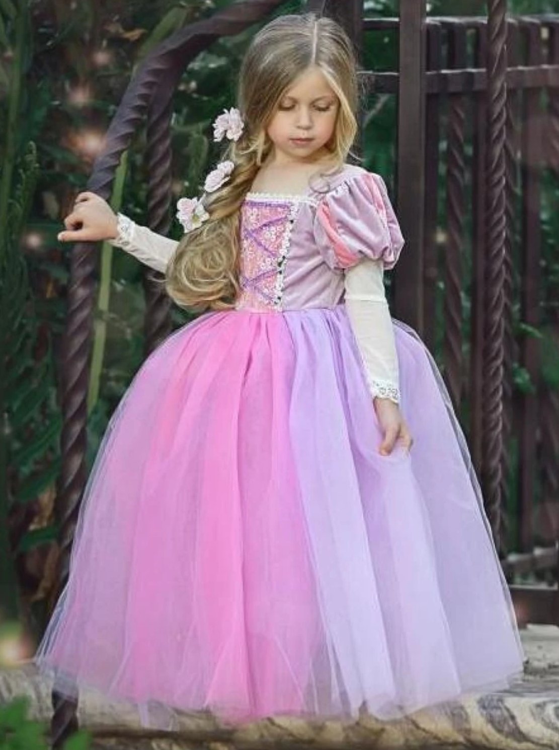 - With this Enchanted Hair Princess costume, your little princess will look divine! This lux velvet gown is soft to the touchy, flowy, and simply enchanting. With a full-length multicolored tulle skirt, your sweet girl will spend hours twirling away!