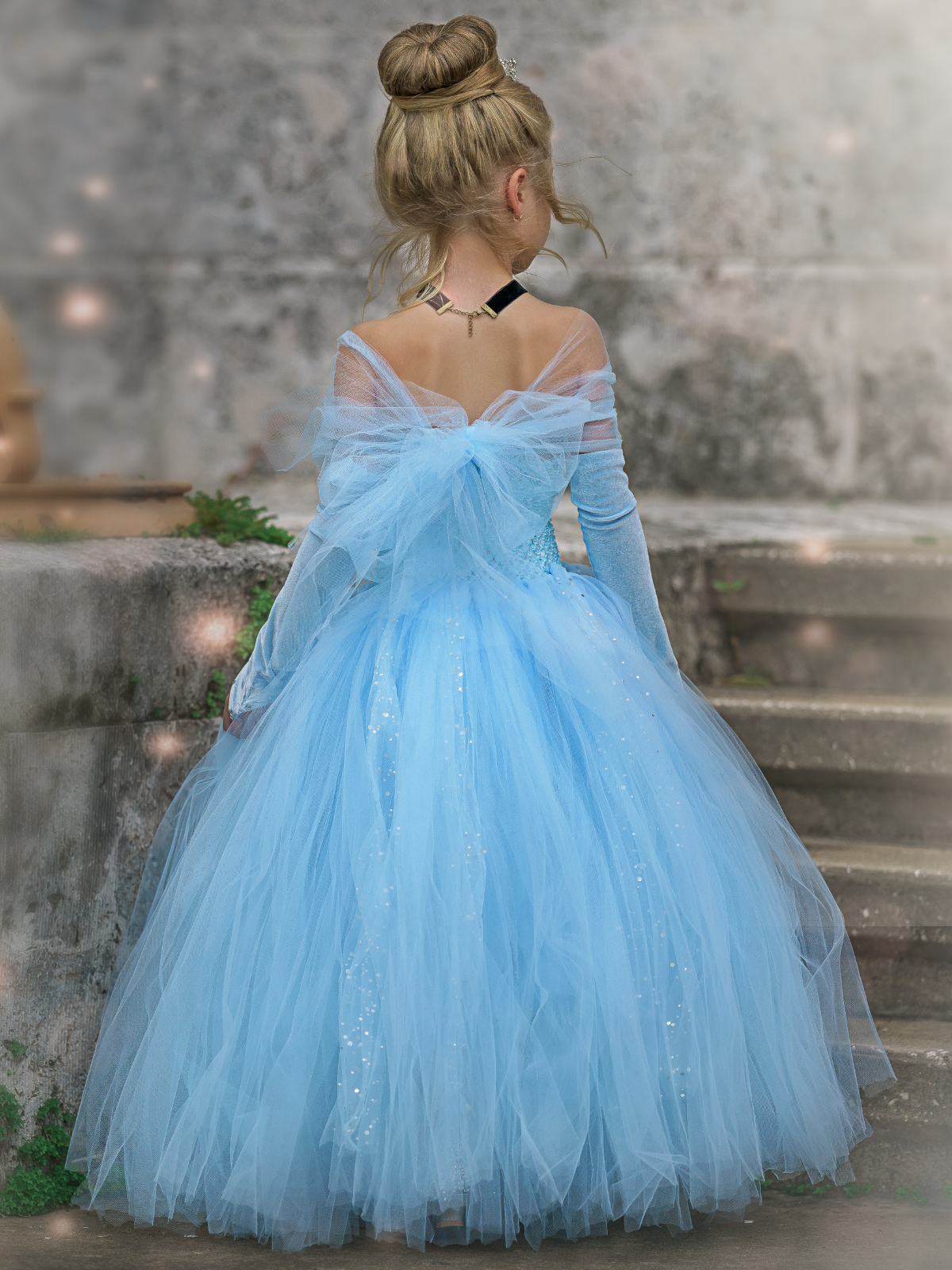 Girls Magical Glass Slipper Princess Costume Gown with Necklace