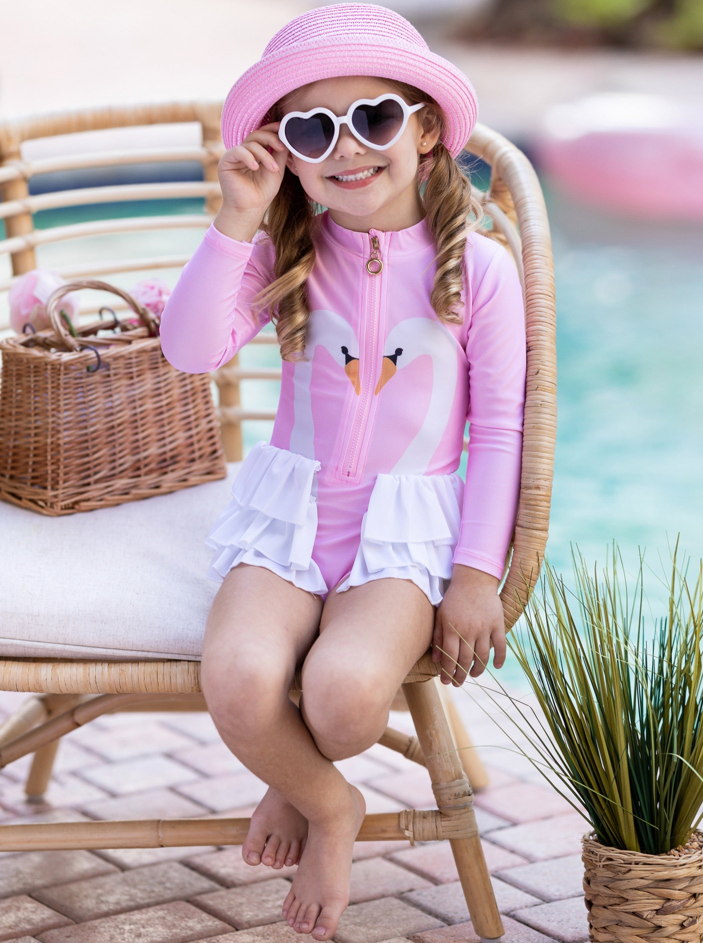 - Your summer babe takes to style as a swan takes to water. So this Swan Lake rash guard long-sleeve one-piece swimsuit was made with her in mind. High-quality elastic spandex offers enough space for your growing cutie and the rash guard looks fancy while providing extra protection from the sun.