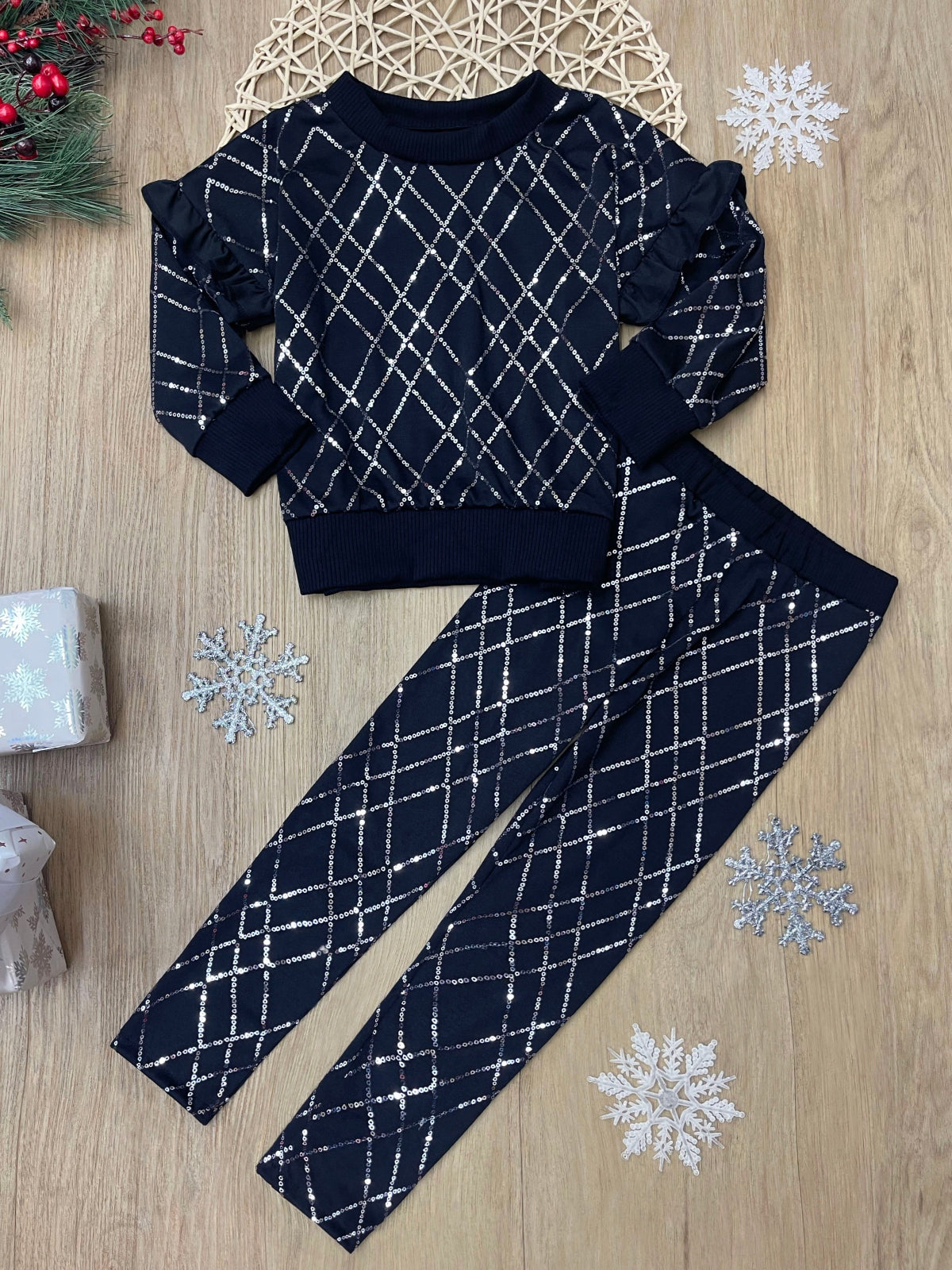 Holiday Glam Sequin Ruffle Top and Legging Set