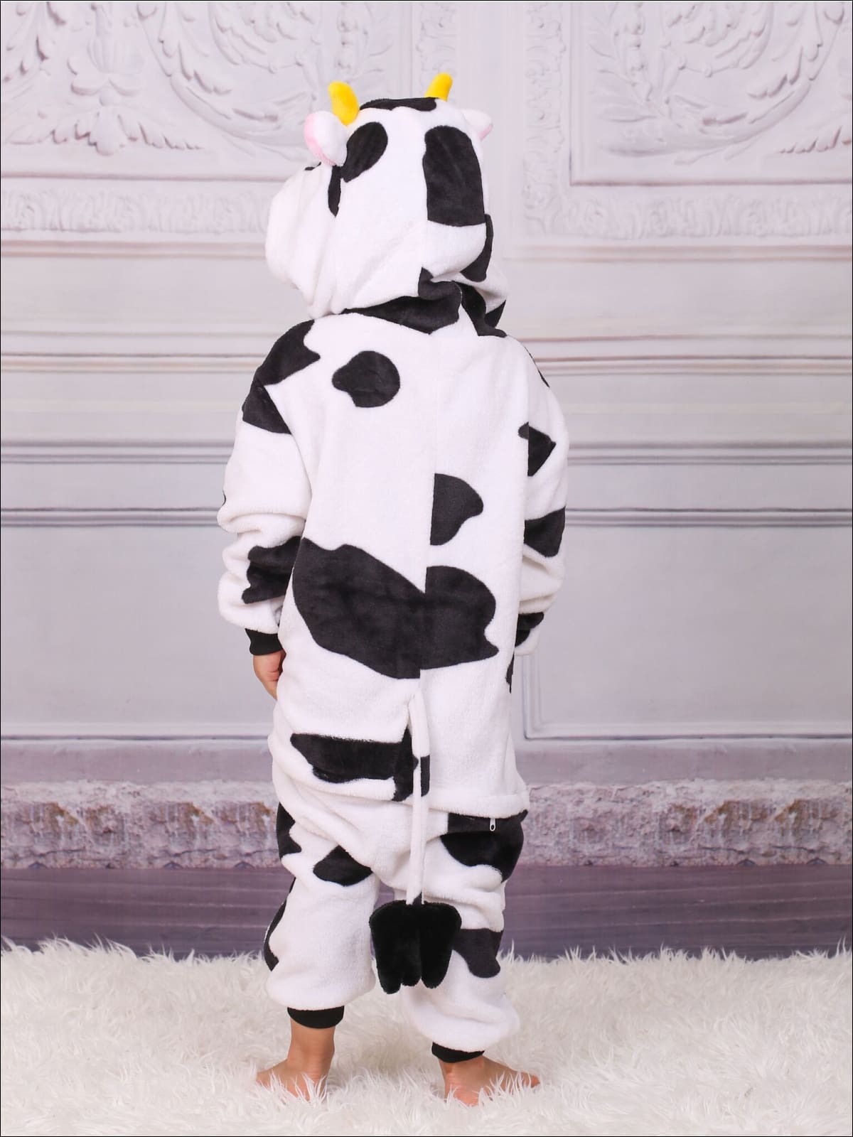 - Cow hooded onesie pajamas with side pockets, tail, and button-down front