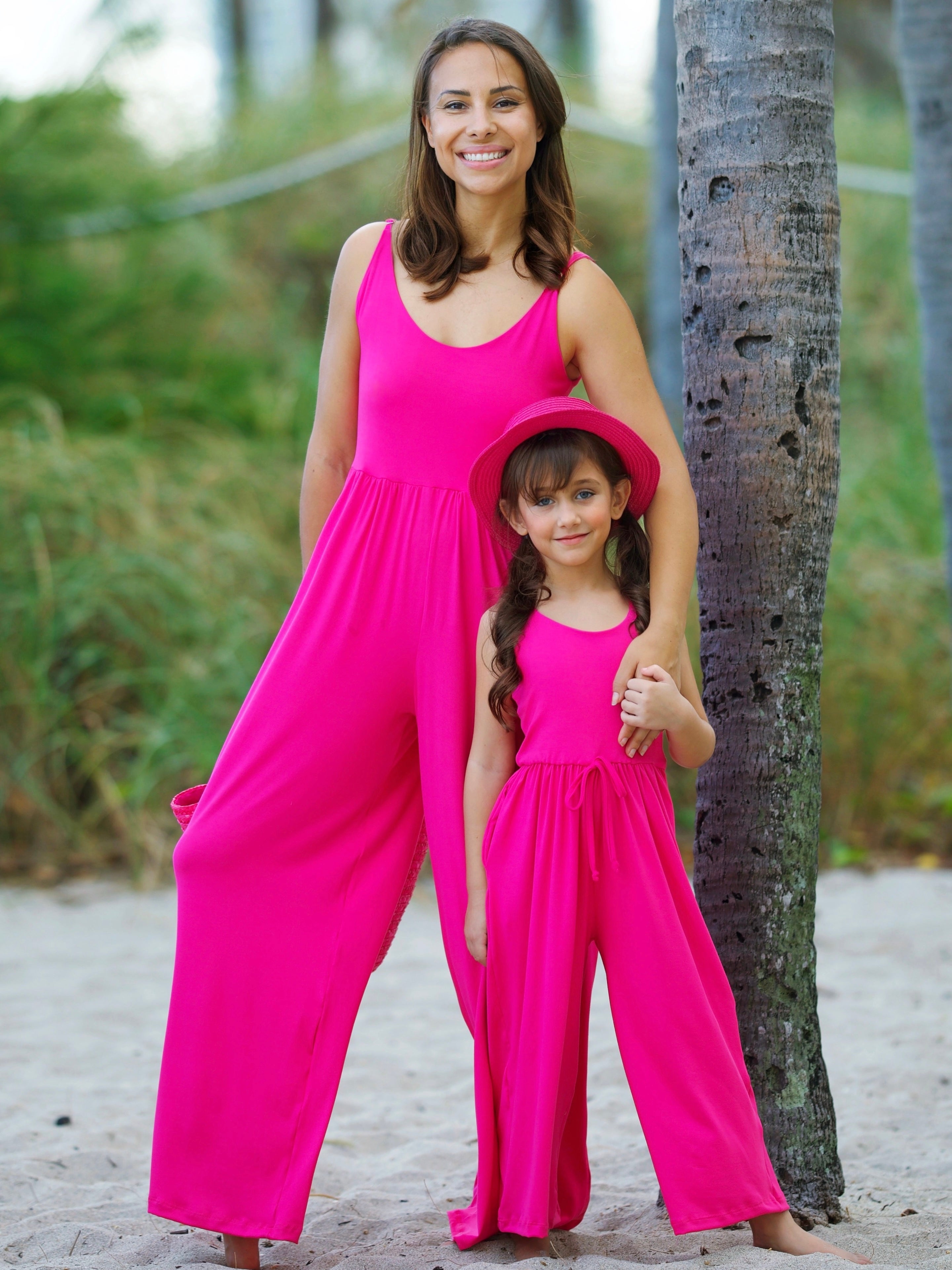 - Picture-perfect moments are guaranteed with this Mommy & Me hot pink jumpsuit. You and your little one will be blushing with joy while enjoying spring adventures.