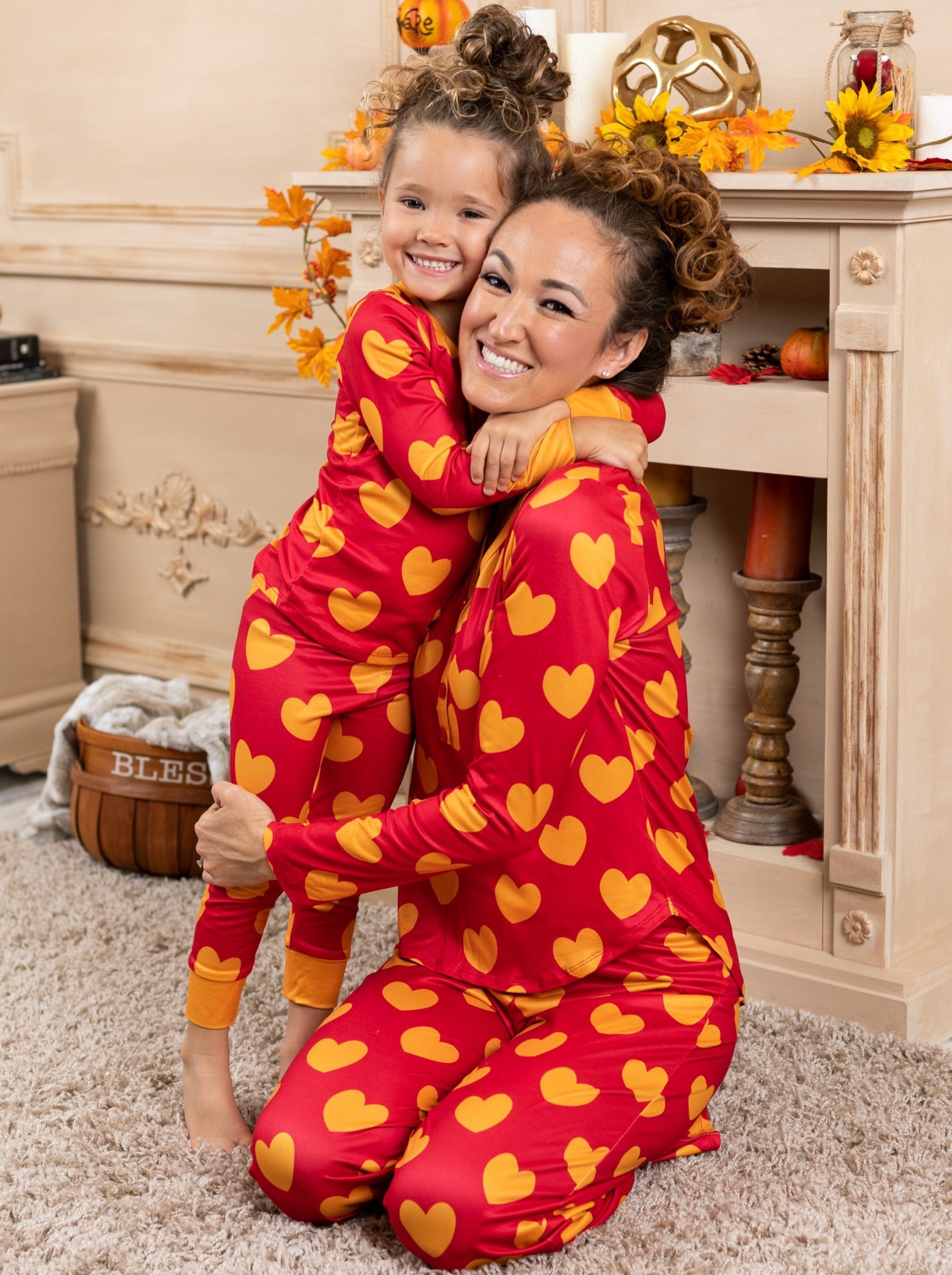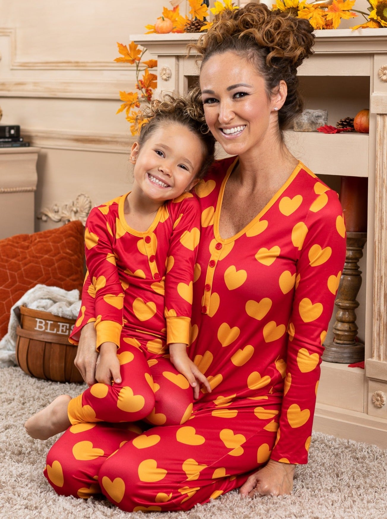 - Fall asleep and wake up covered in love with our mother-daughter matching heart print pajamas. Not only are they adorable, but they also make for the cutest twinning selfies when lounging around.