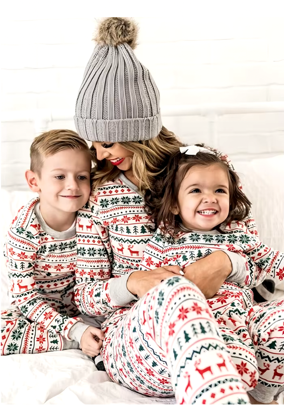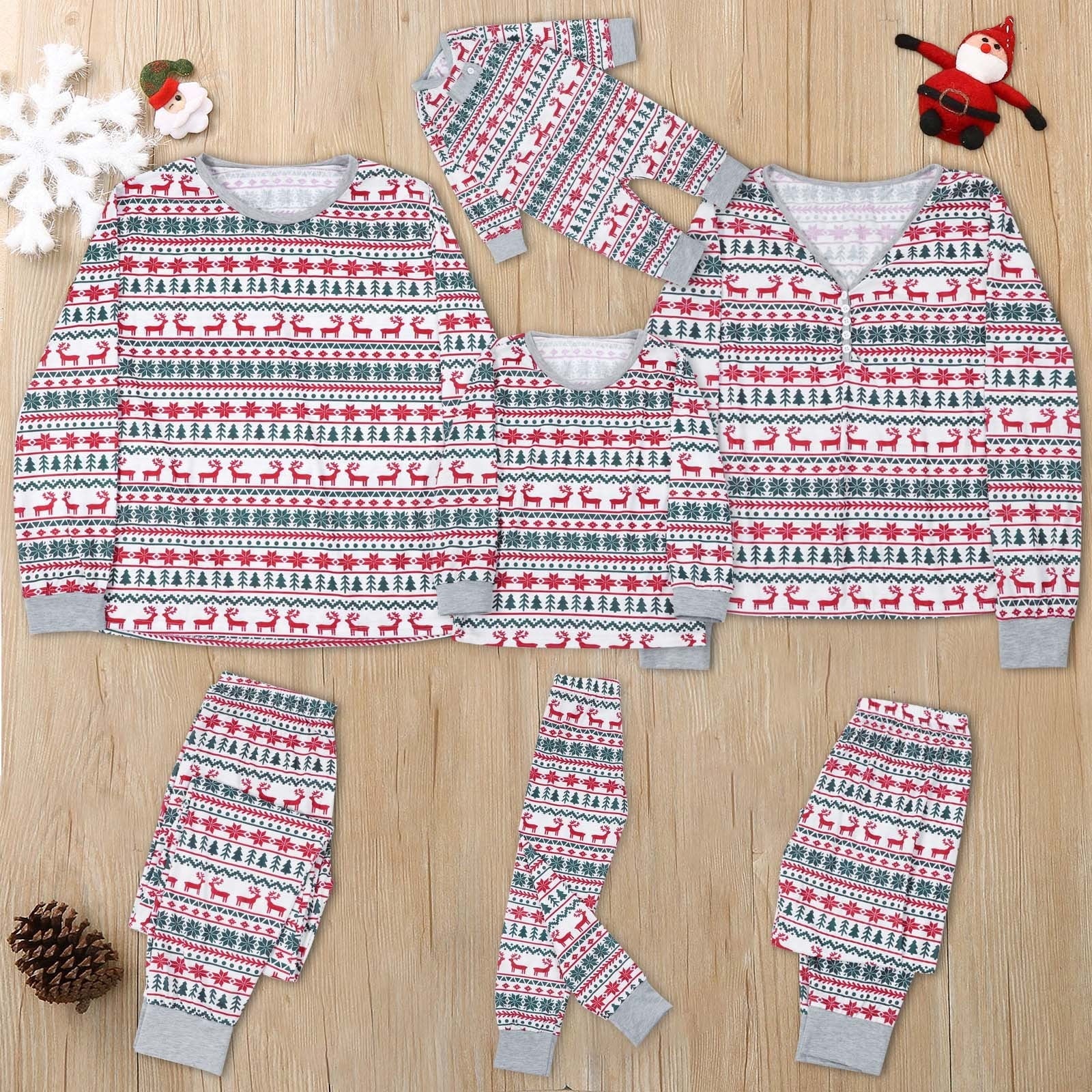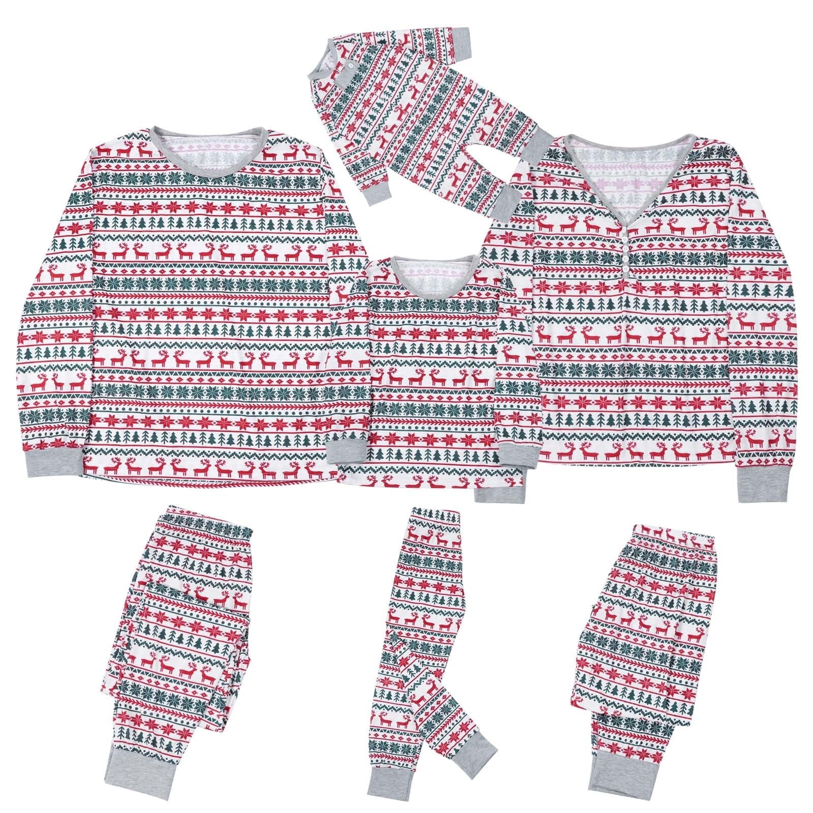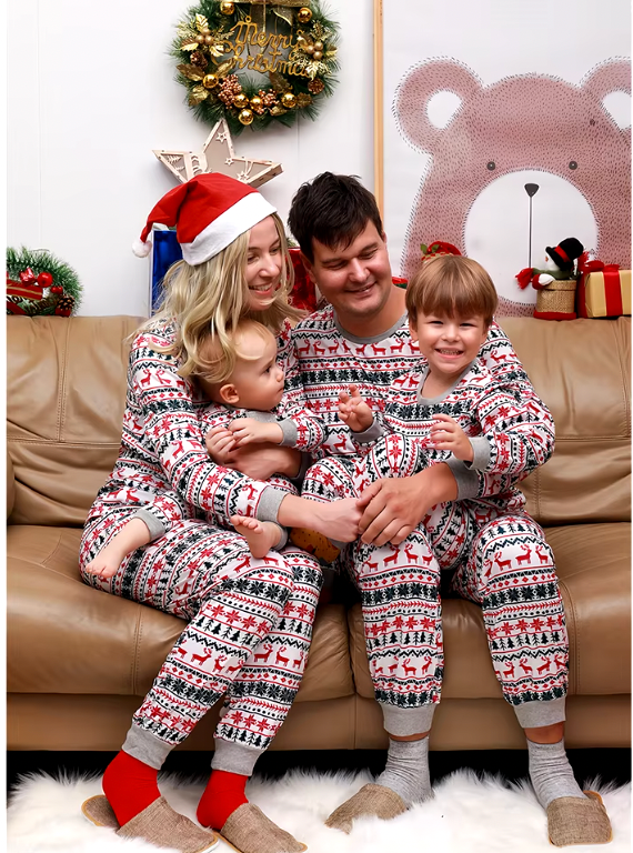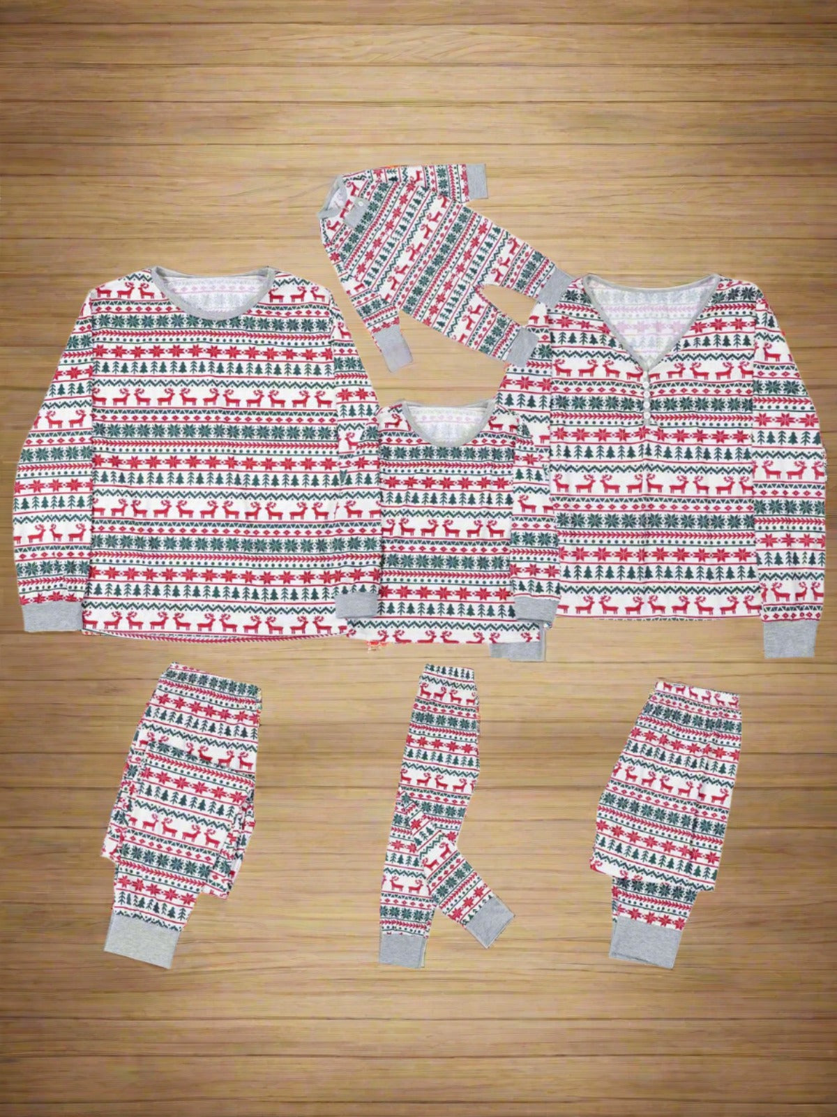 - Time for some reindeer snuggles! Featuring true Christmas red top and striped pants with reindeers, trees, and stars, these jammies are just what the family needs to bond and look adorable together! Buttery soft and oh-so-adorable, they make mom, dad, brother, and sister look festive and cozy.