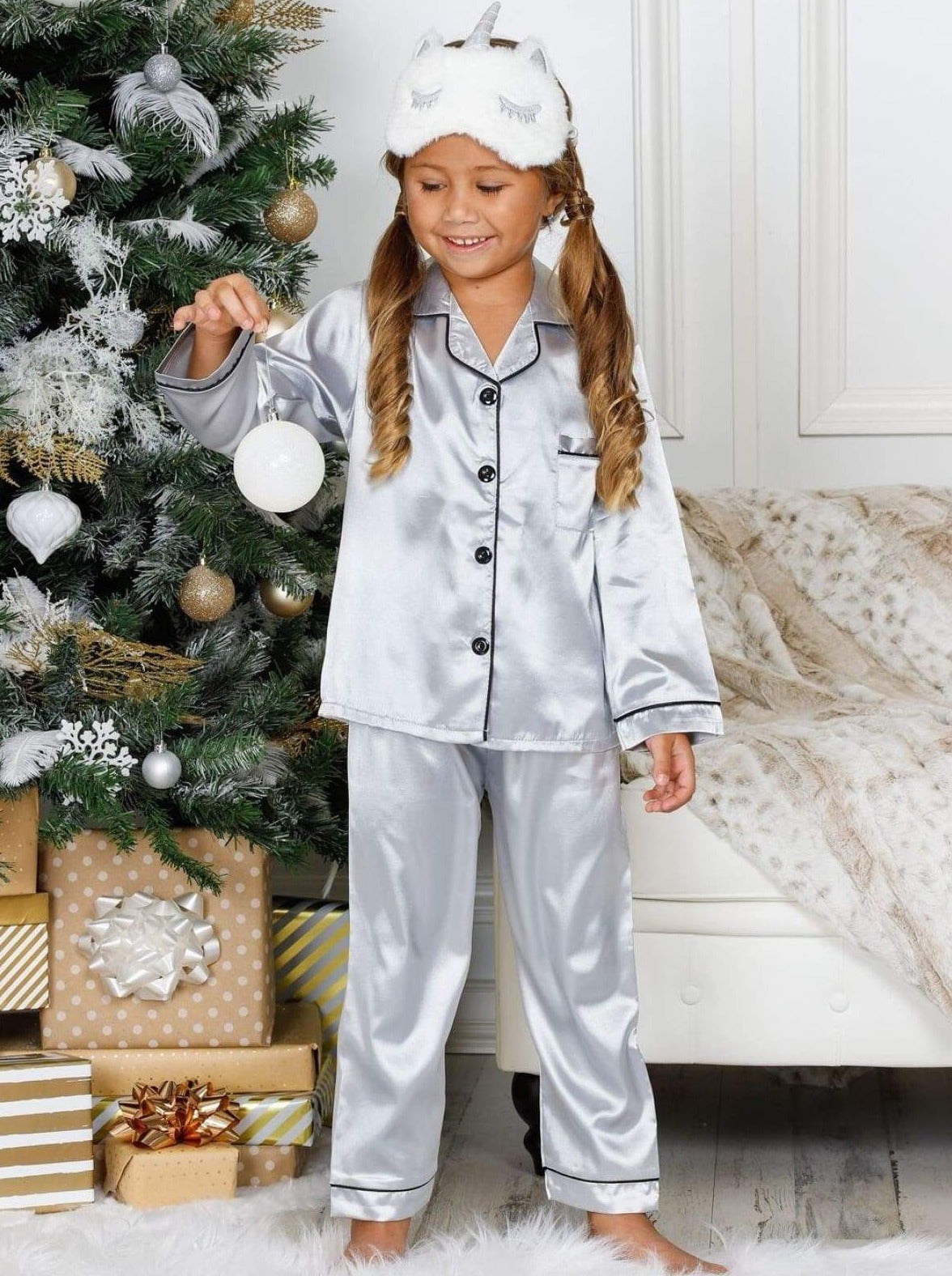 - When only silky smoothness with do at bedtime for you and your darling diva, dress yourselves in divine comfort for the holidays with these gorgeous button-down pajamas. Sleek, fancy, and available in three colors, fall asleep or rise 'n shine wrapped in comfort and style. Decorate the tree, bond over breakfast, or frantically open presents together like never before.