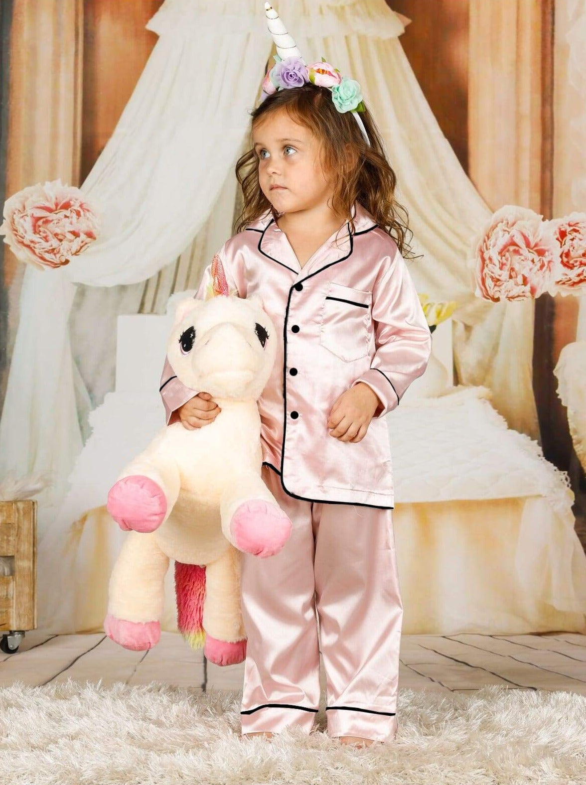 Mommy and Me Silky Long Sleeve Button Down Pajamas