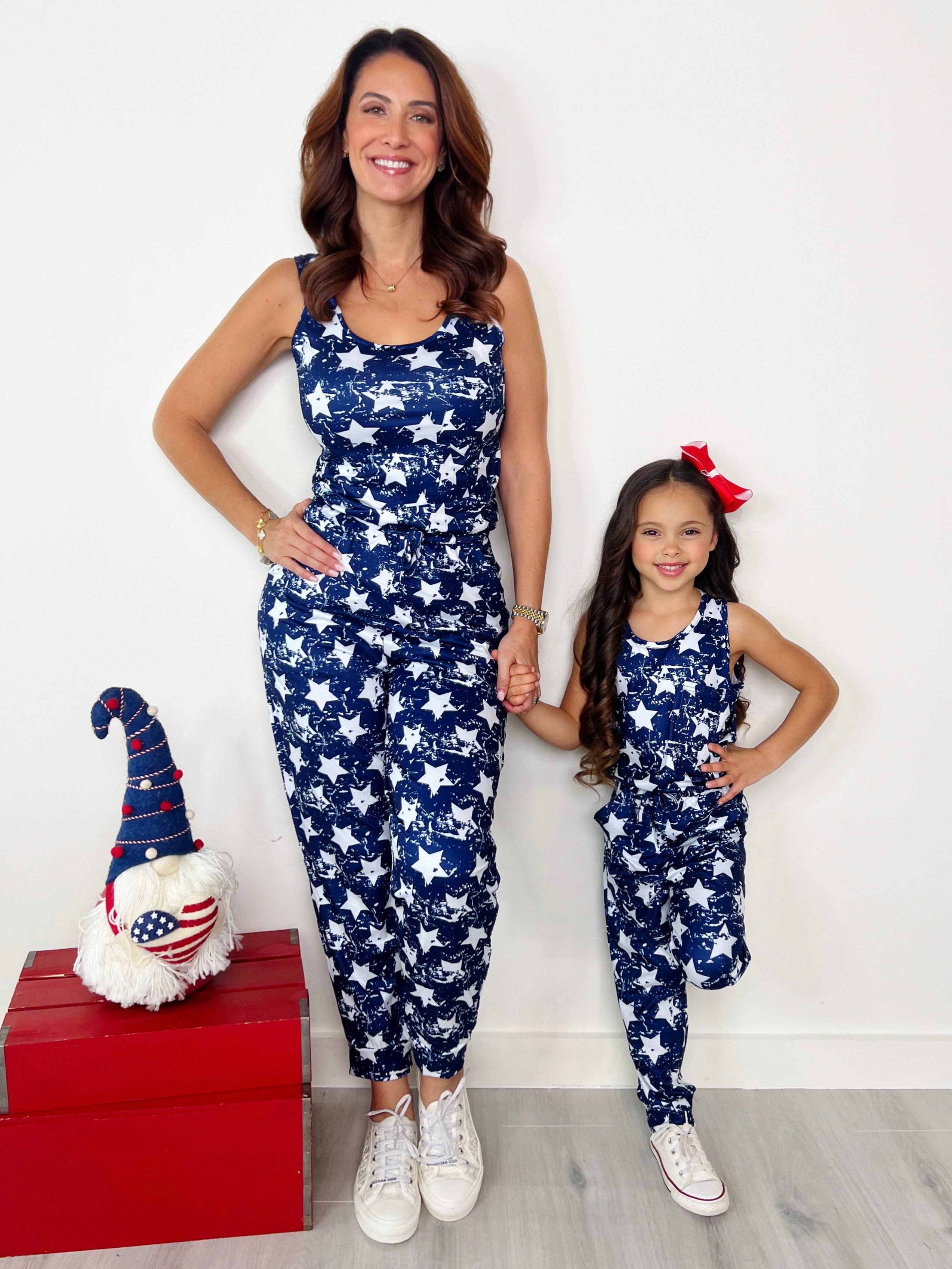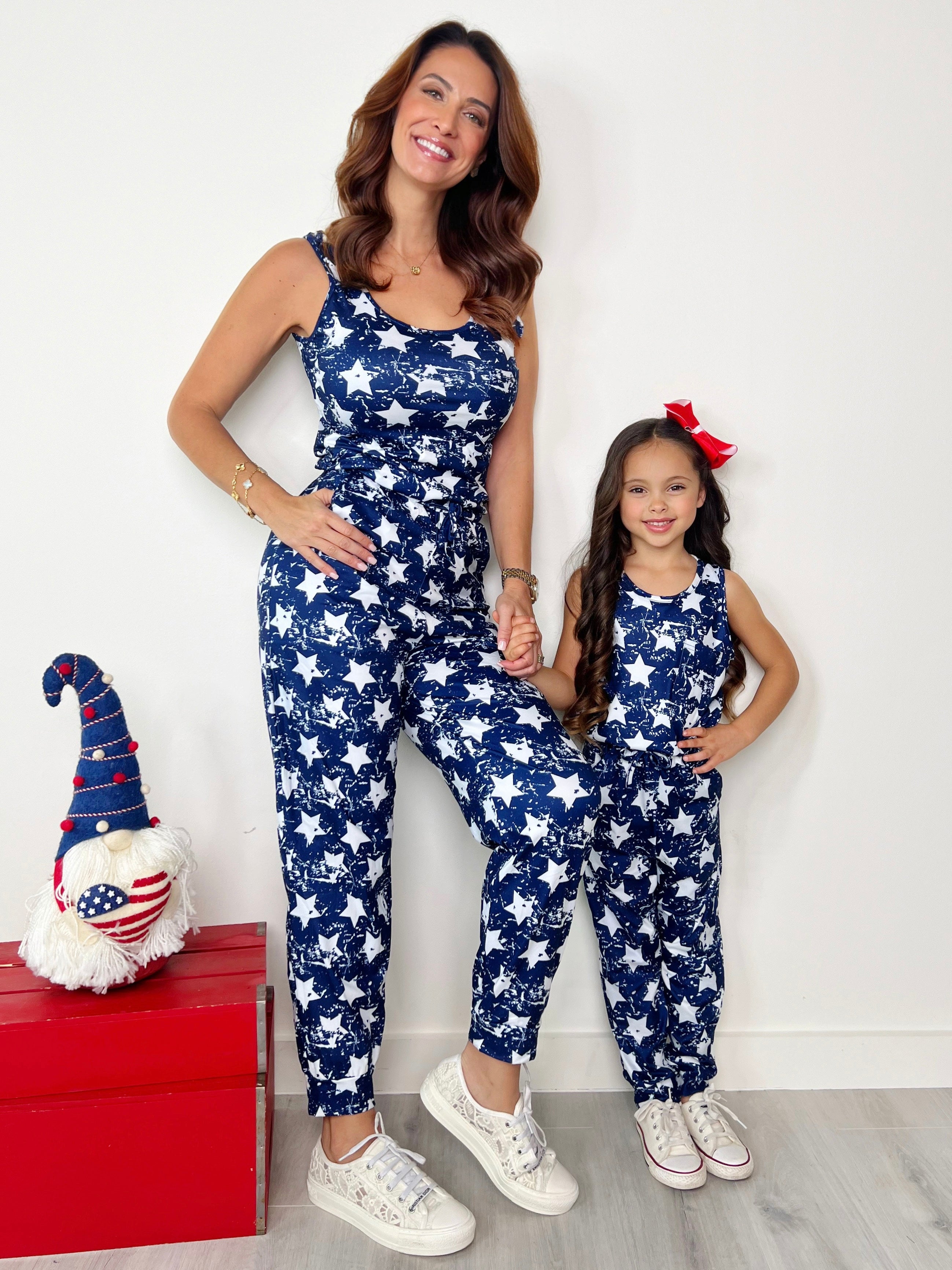 - Matching with your mini has never been cuter! This adorable starry jumpsuit is the perfect addition to both mommy & daughter's Spring & Summer wardrobe. Ideal to celebrate the 4th of July with family and friends