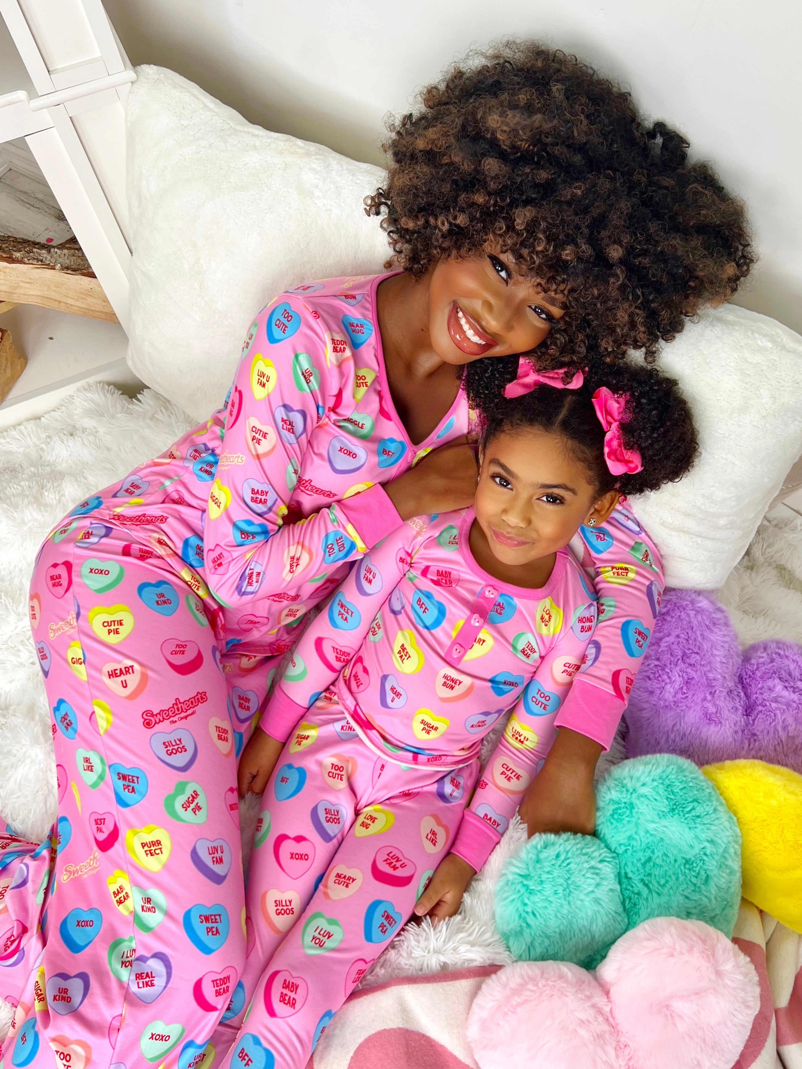 - Show off how SWEET your bond is with our Sweethearts® pink pajamas! These matching designs couldn't be more precious for mother-daughter spa days or lounging around looking your sweetest. Covered in those iconic conversation heart candies, it's absolutely snuggle-approved.