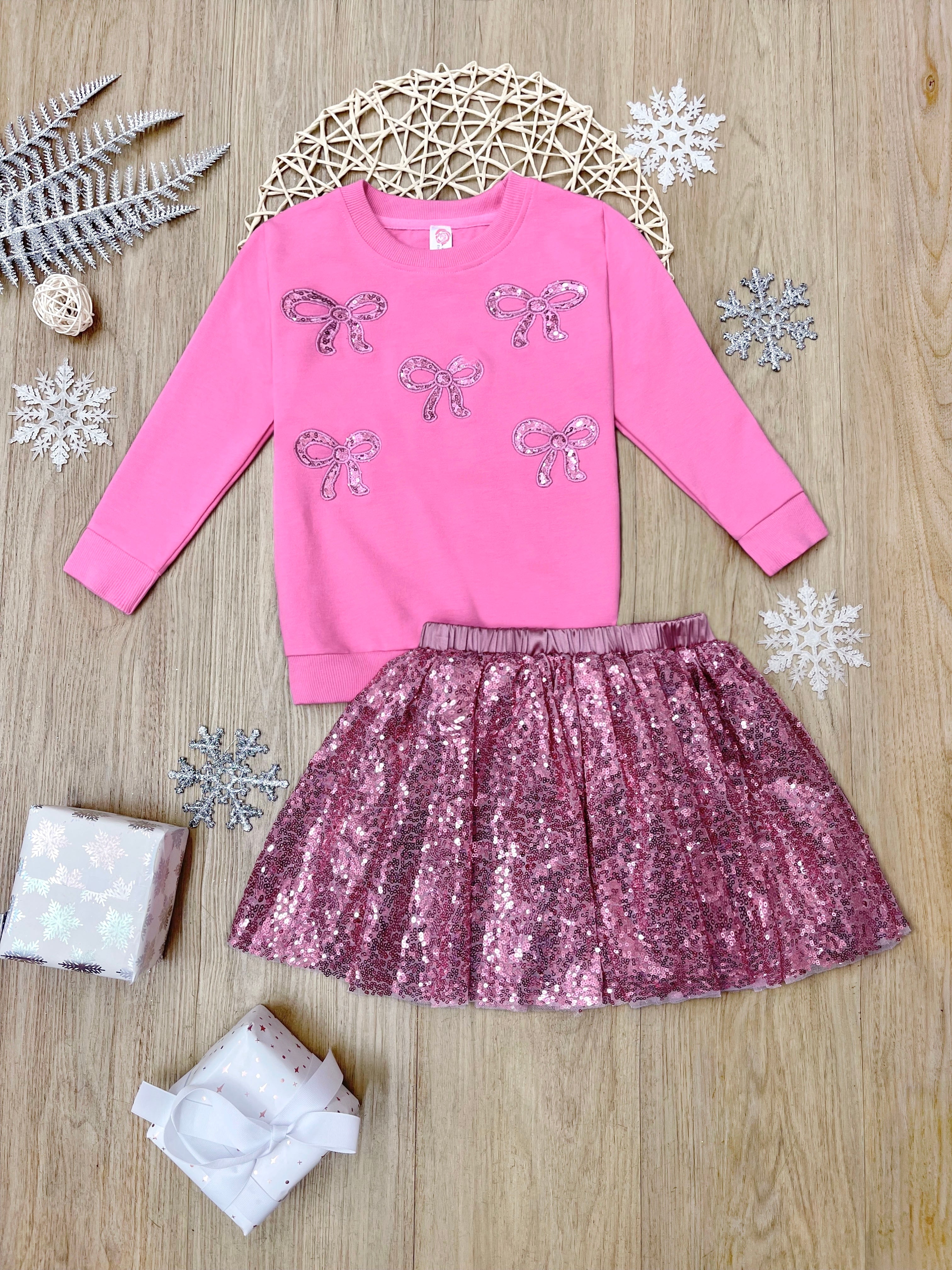 Sparkle Bowtique Sweater and Pink Sequin Skirt Set