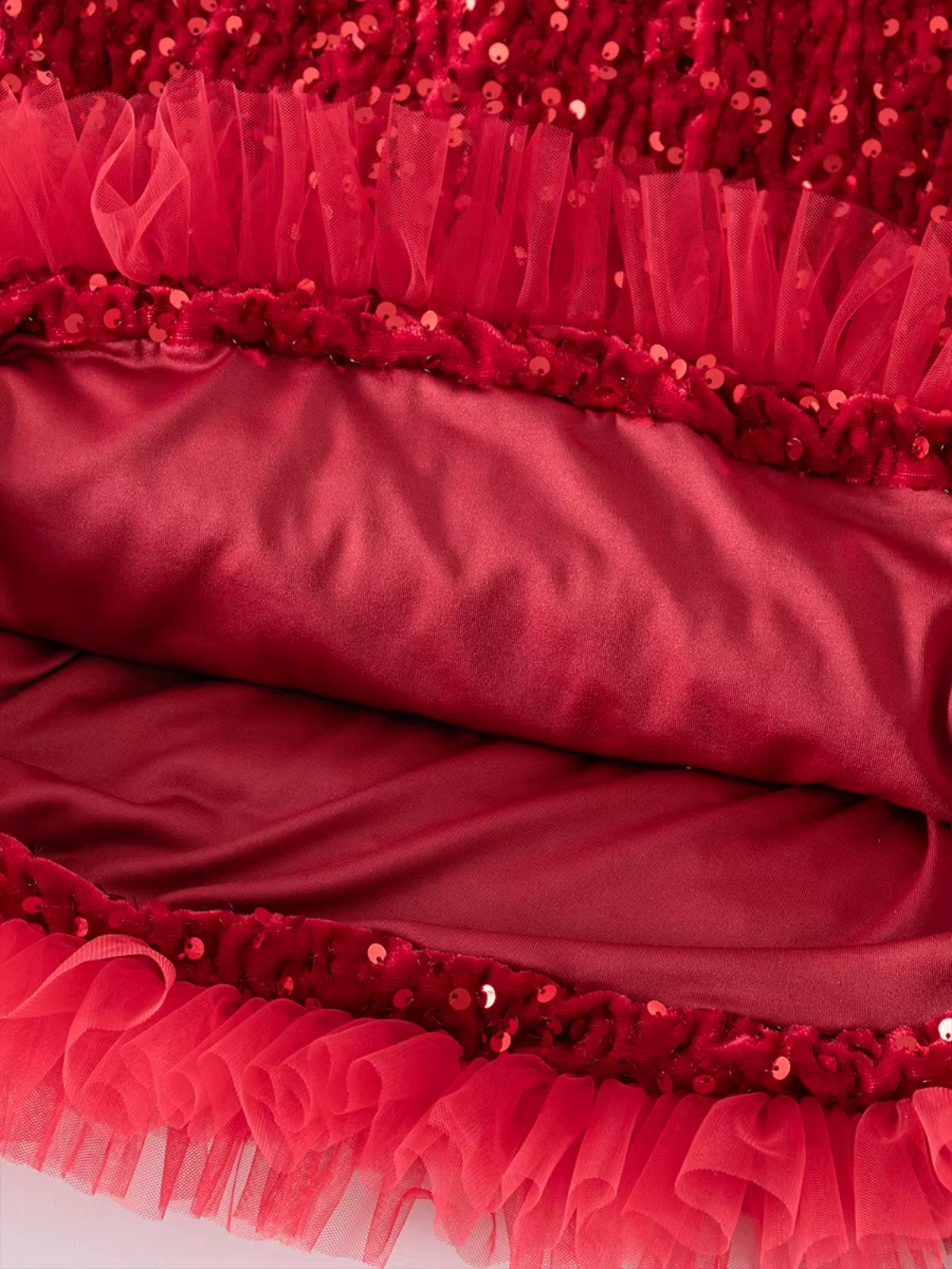 - Features a glittering sequin bodice with a fluffy layered tulle skirt for a magical princess look