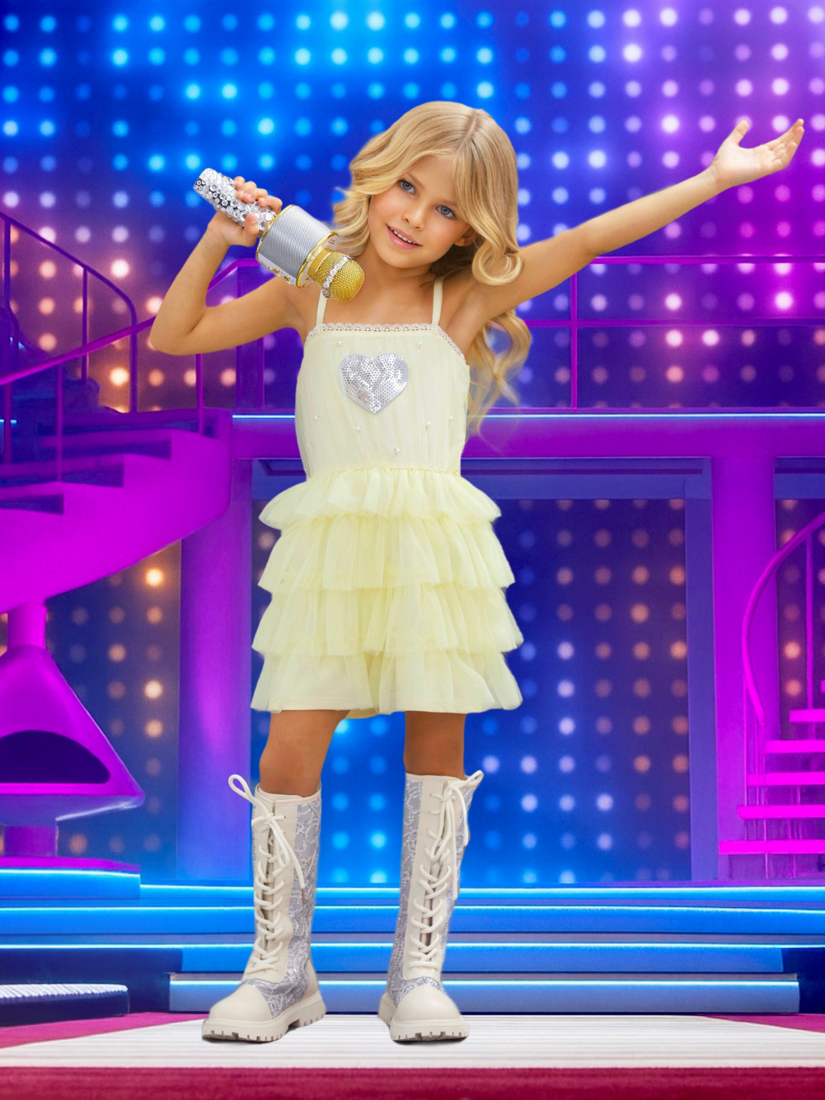 - Soft pastel yellow tulle layers create a playful, show-stopping silhouette that twirls with every move.